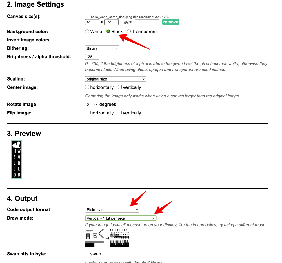- Draw Mode: ‘Vertical - 1 bit per pixel’