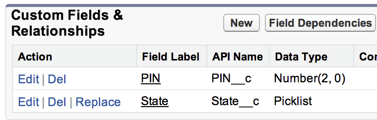 To do so we need to head to Setup/Create/Objects click “New Custom Object”, and then add the 2 custom fields.